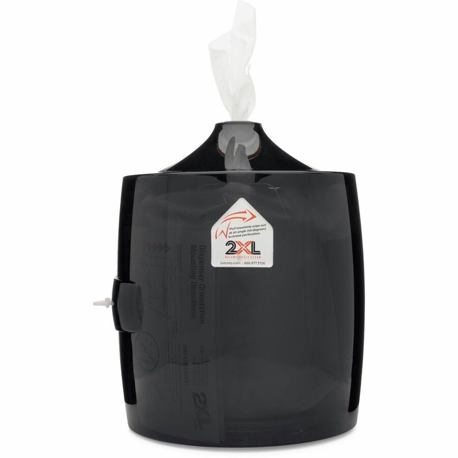 Convenient, wall-mount dispenser offers touch-less dispensing of GymWipes in high-traffic facilities. One-at-a-time, touch-less dispensing reduces usage and minimizes the risk of cross-contamination. Users won't have to bother with levers, dials or cranks. Fully enclosed design keeps wipes stay clean and dry. It is easy to load and self-threading to reduce maintenance. You can load with one hand. The unique side-hinged lid makes it easy. Locking hinged cover eliminates pilferage. Adjustment for spring tension customizes feel and pull force. Unique split funnel has automatic tensioning.